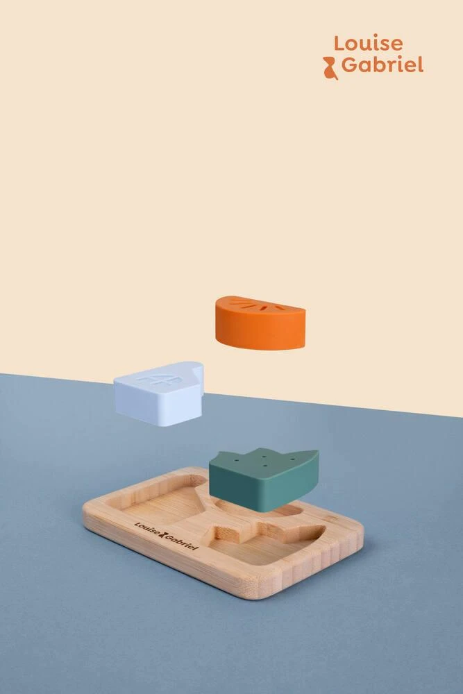 Puzzle en bambou avec ses 3 pièces en silicone (FDA et LFGB standards). Il développe la psychomotricité fine grâce à ses formes simples, faciles à prendre en main. La base en bambou massif est recouverte d’un vernis écologique à base d’eau. Les formes, en relief, facilitent la prise en main des enfants. Les pièces sont composées de silicone bénéficiant d’un grade alimentaire. Elles peuvent donc être mâchouillées sans danger pour les enfants et soulager leurs gencives. Contenu : 1 base et 3 pièces. Les pièces passent au lave-vaisselle pour un entretien facilité. Conçu avec une psychomotricienne. Instructions sur la boîte.