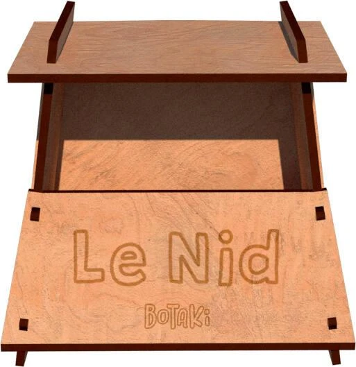 Innovant, cet article permet d’en savoir un peu plus sur les oiseaux. Le kit est aussi en lien avec l’application « Village Botaki » sur laquelle votre enfant peut faire des jeux et des quiz pour tester ses connaissances. Le coffret fait 24 cm de longueur pour 24 cm de largeur et 2,7 cm de hauteur. Une fois assemblé, le nichoir a une longueur de 21 cm, une largeur de 17.5 cm et une hauteur de 12 cm. Il peut directement être monté à la main sans clous, ni colle, ni vis.