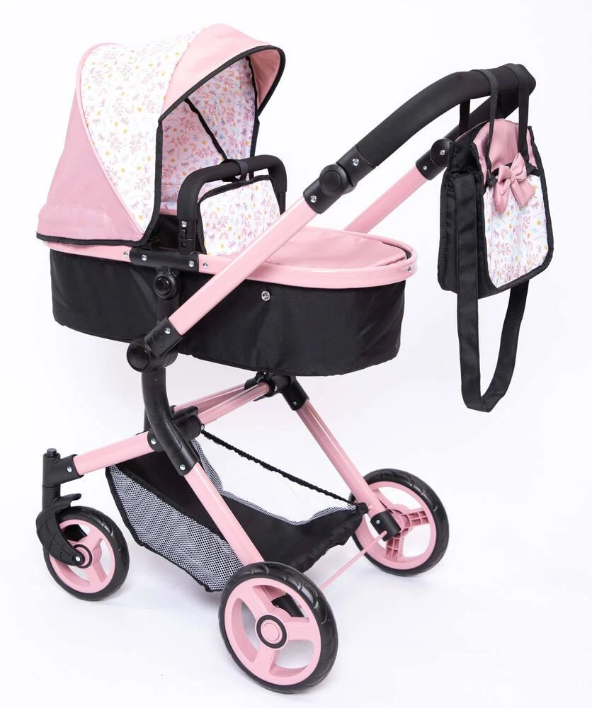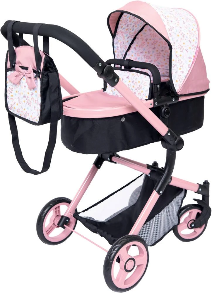 Ce landau combi est un landau multifonction au design moderne. Châssis résistant. Pour poupée jusqu’à 52 cm (non fournie). Grâce à sa poignée ajustable en hauteur de 68 jusqu’à 86 cm, il est facilement adaptable à la taille de l’enfant. La nacelle ou porte-bébé se détache facilement et permet ainsi à l’enfant d’avoir sa poupée face à lui ou face à la route. Le landau a une poignée réversible : elle peut être facilement déplacée des deux côtés. Appuie sur les boutons pour convertir le landau en poussette. Canopy (capote de poussette) protégeant la poupée du soleil ou du vent qu’elle soit couchée ou en position assise dans le landau. Capote ajustable et amovible. Facile à manœuvrer, roues avant pivotantes. Pour le transport et un gain de place, le combi se plie facilement. Equipé d’un panier à provisions. Livré avec un sac à langer qui sera utile à la petite « maman », dimensions 22 x 7.5 x 21 cm. Ce sac a une fermeture éclair, il peut être porté en bandoulière ou comme un sac à mains. L’assemblage doit être effectué par un adulte. Instructions de montage incluses. Poids du landau : 4.75 kg. Dimensions de la nacelle : 60 x 26 x 14 cm. Matières du landau : acier, polyester 300D, EVA, PP et nylon. Le siège auto coque (jcu 41055666, vendu séparément) est compatible avec le landau de ville.