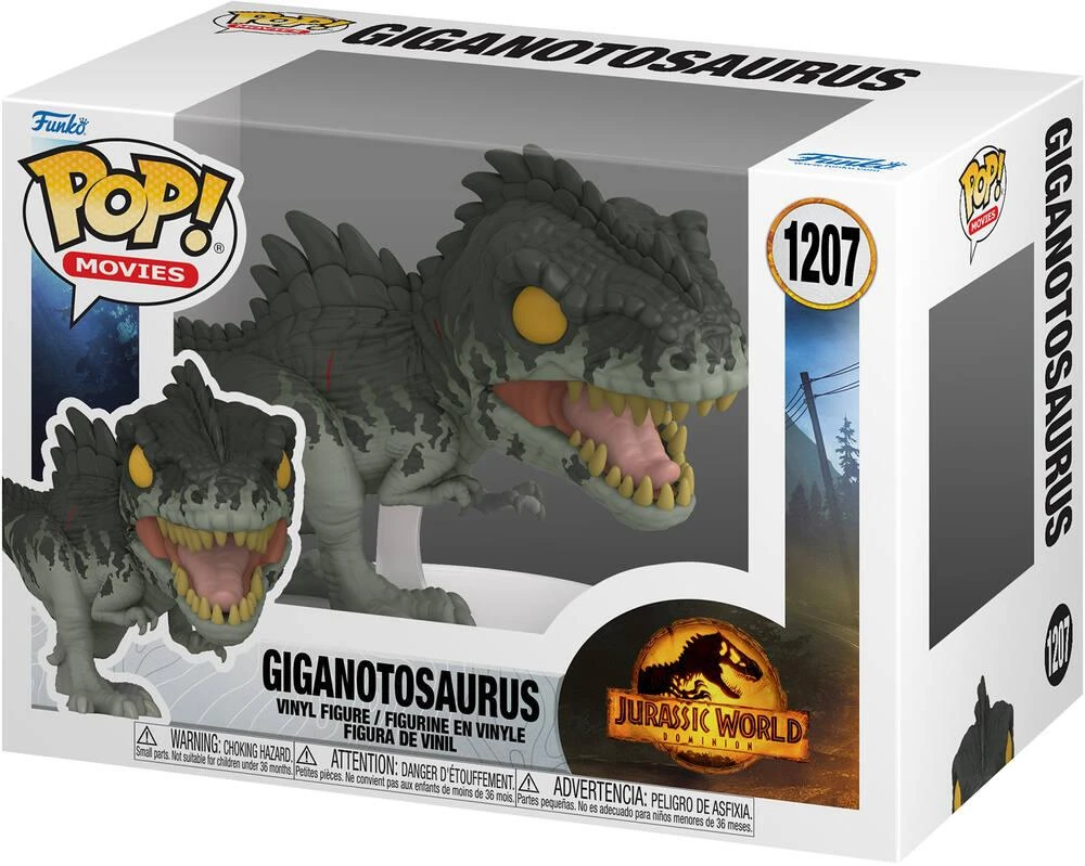 Série Pop! Movies. Jurassic World Dominion. Figurine en vinyle. Il s’agit du dinosaure Giganotosaurus.