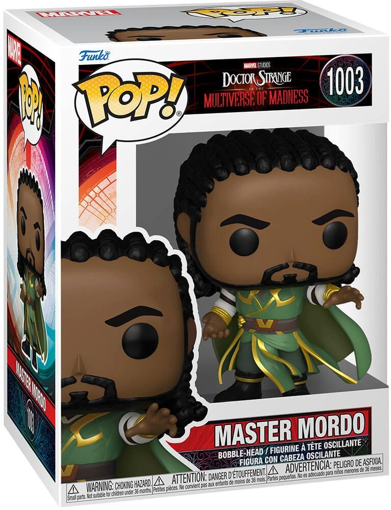 Série Pop! Movies. Marvel : Dortor Strange in the Multiverse of Madness. Figurine en vinyle avec tête dodelinante (oscillante). La tête montée sur ressort bouge d’un côté à l’autre. Il s’agit du personnage de Master Mordo.