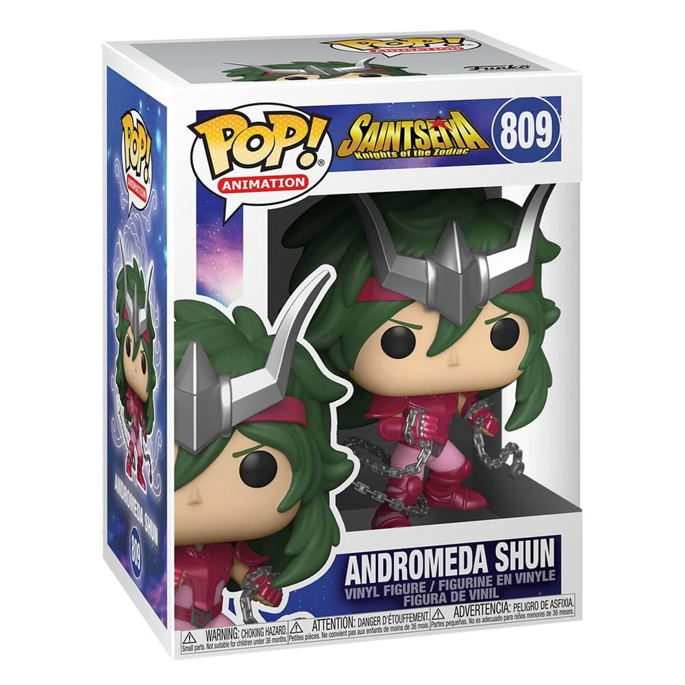 Série Pop! Animation. Licence : Saint Seiya (en français Les Chevaliers du Zodiaque). Figurine en vinyle. Il s’agit du personnage de Shun le Chevalier d’Andromède (en anglais Andromeda Shun). Il fait partie des chevaliers de bronze.