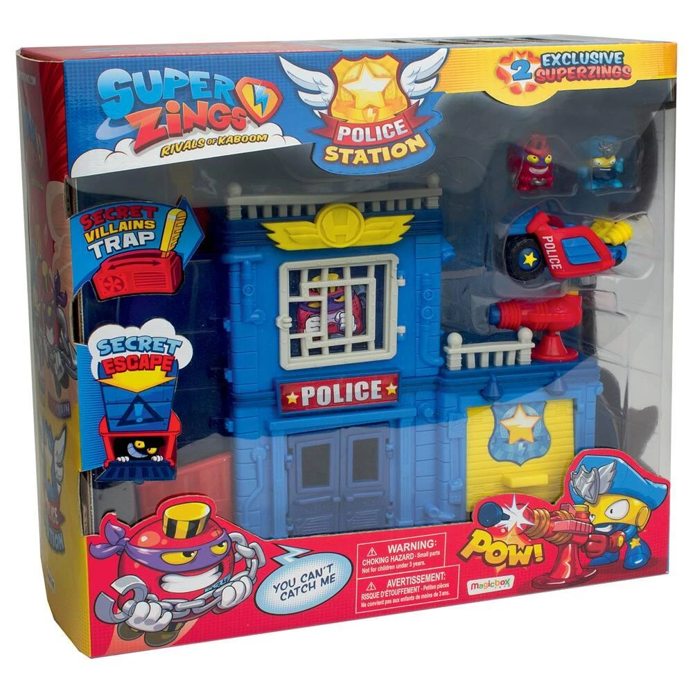 Surveille les rues de Kaboom City grâce au poste de police avec son canon, son piège et son passage secret ! Contient 2 figurines et 1 véhicule à roues libres. Modèle des figurines selon disponibilité.