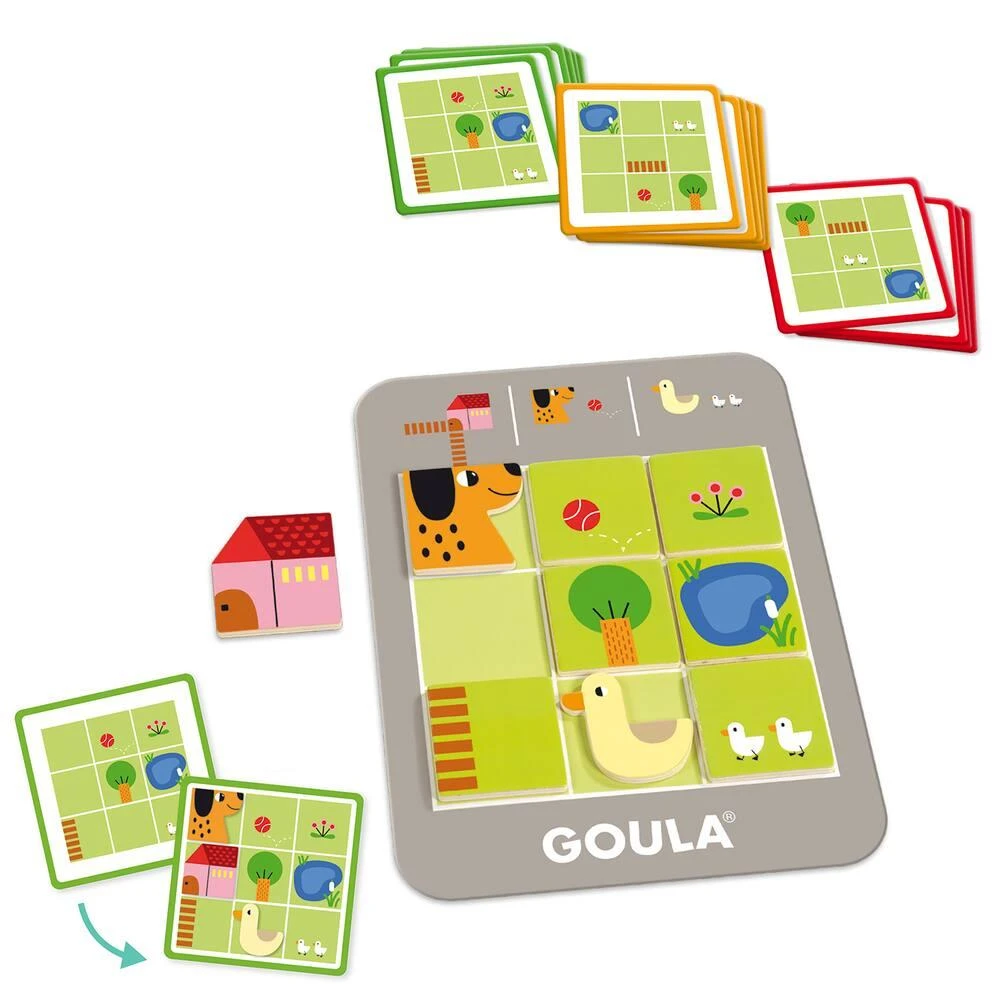Un jeu de logique sur la thématique de la ferme. 2 modes de jeu. Un mode de jeu individuel où l’enfant suit les règles pour placer les différentes pièces et relever le défi indiqué sur chaque carte. Un mode de jeu compétitif où le gagnant est le premier joueur qui obtient les 5 cartes.