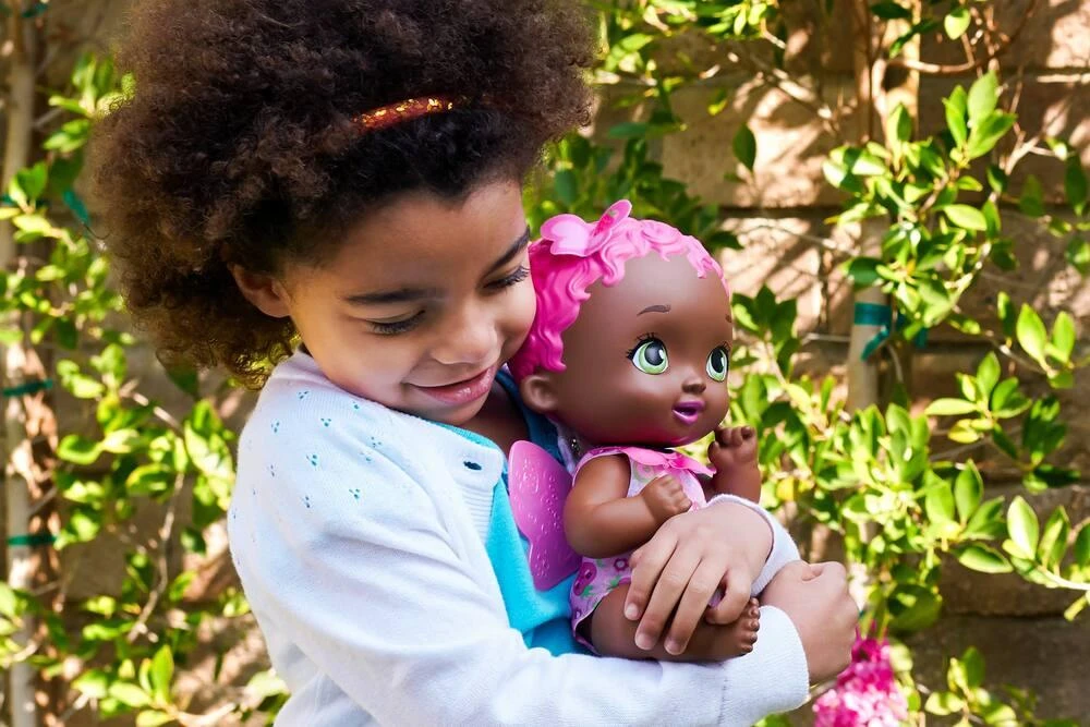 Les petits vont craquer devant cette poupée Bébé Papillon Fraise Se Régale My Garden Baby de 30 cm, avec ses adorables ailes, sa magnifique couleur de cheveux et son parfum gourmand de fraise. Donnez-lui à manger à l’aide du gobelet et de la cuillère et ajoutez de l’eau froide pour des changements de couleur fantastiques ! La poupée porte une grenouillère amovible avec un imprimé sur le thème des baies. L’emballage se plie en forme de berceau.