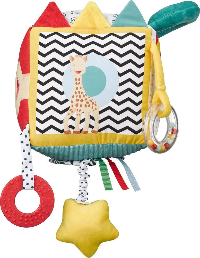 En textile. Avec 9 activités pour éveiller bébé. Il s’attache partout grâce à son crochet. Boîte à musique intégrée.