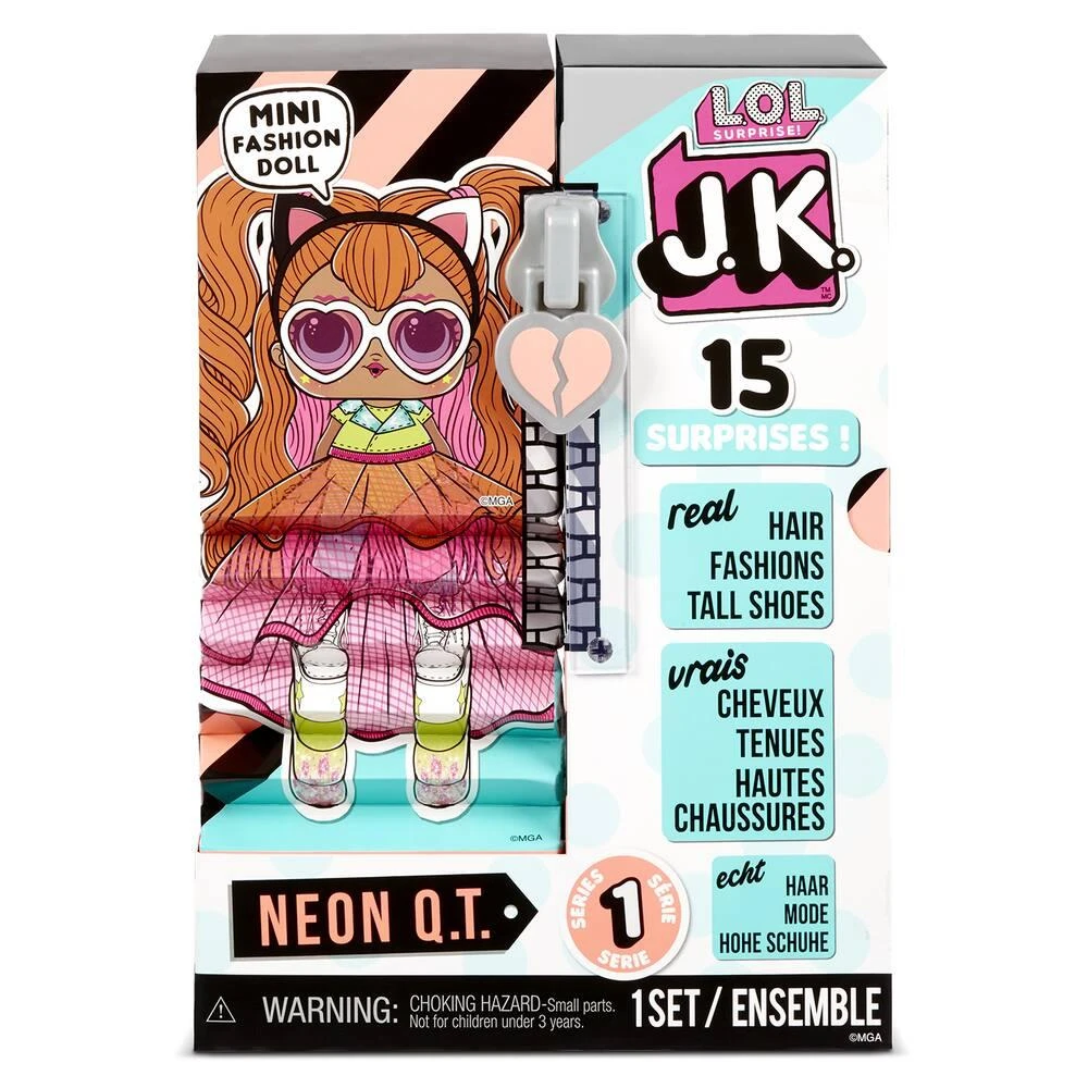 Ces petites sœurs veulent ressembler à leurs aînées et se pavanent dans leurs tenues extravagantes ! Dotées de vrais cheveux, de tenues fashion et de chaussures à semelles démentielles, ces outrageuses B.Bs sont prêtes à surfer sur la vague de leurs grandes sœurs tout en arborant un style unique ! Ce sont juste des CHAUSSURES JK! C’est ce qui me rend grande. C’est juste de la MODE JK! C’est ce qui me permet d’exprimer ma personnalité. C’est juste un PODIUMK! C’est ce qui me rappelle que je peux affronter le monde ! ?Caractéristiques produit:1 poupée LOL Surprise JK avec des chaussures hyper compensées, de vrais cheveux et des superbes tenues 15 Surprises La boîte se transforme en playset Series 2. 4 modèles à collectionner.