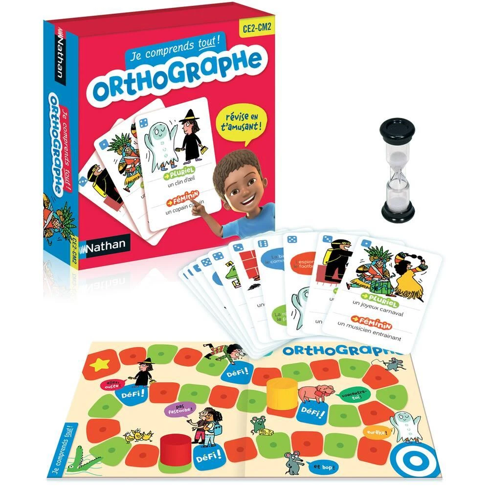 Un jeu pour apprendre l’orthographe de manière simple et amusante. Avec un plateau et deux pions en bois. 2 joueurs. Plusieurs défis rigolos avec 80 cartes.