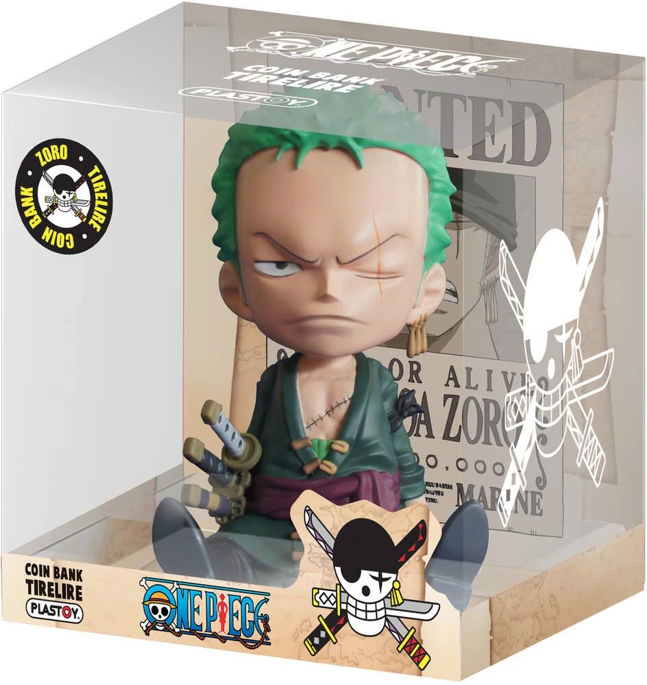 Retrouve la tirelire Roronoa Zoro, ex-chasseur de pirate, qui est le premier membre de l’équipe du chapeau de paille.