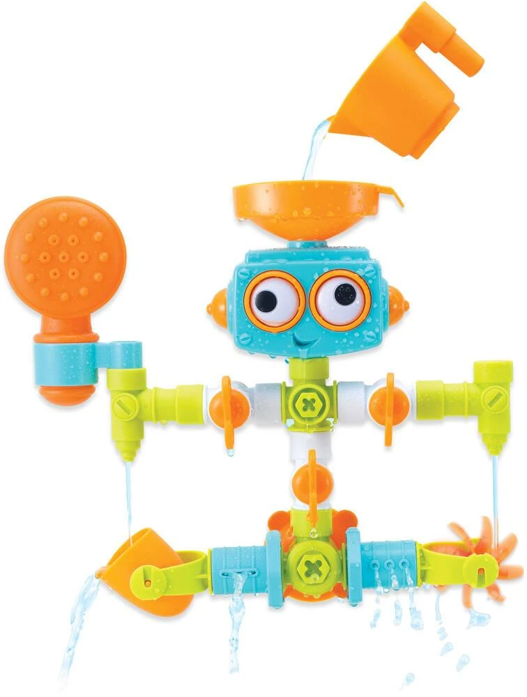 4 balles en plastique souple, très légères, de couleurs vives, de formes et de tailles variées. Faciles à attraper et manipuler, découvrir des textures différentes , faire rouler, lancer Plein d’amusement. Verse de l’eau sur la tête du robot grâce à l’entonnoir et regarde ses yeux tournoyer. Ouvre ou ferme les robinets pour apprendre la relation de cause à effet. Avec douchette, gicleur, moulin à eau… pour des heures d’amusement ! 16 pièces incluses.