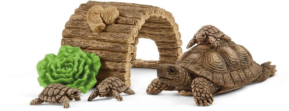 Kit WILD LIFE Maison pour tortues comprenant 1 grande tortue, 3 bébés tortues, 1 salade, 1 abri pour tortue.