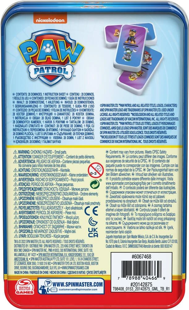 Un grand classique pour jouer entre enfants ou en famille. Contient 28 dominos plastiques de belle qualité, avec des graphismes colorés à l’effigie des personnages de la série TV La Pat’ Patrouille. De 2 à 4 joueurs.