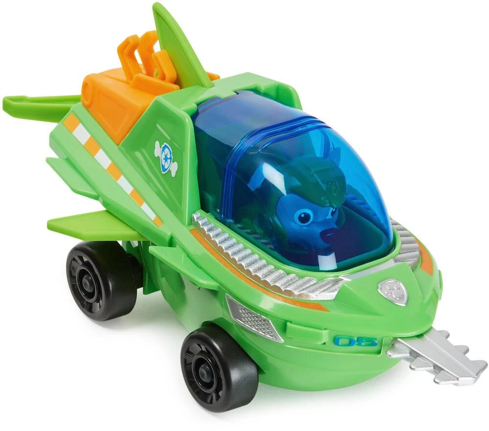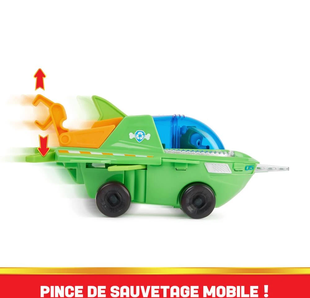 Tes personnages préférés du dessin animé la Pat’ Patrouille sur le thème Aqua Pups. Véhicule de Rocky avec transformation unique pour partir en mission sous-marine. Avec une figurine amovible de Rocky incluse. Contenu : un véhicule et une figurine Pat’ Patrouille Aqua Pups.