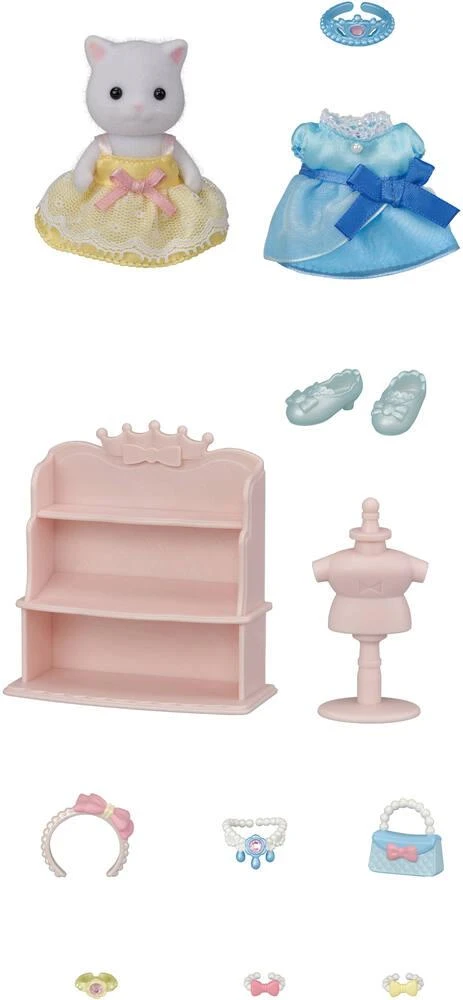 Contient 1 fille chat persan, 1 robe de princesse, 1 penderie et de nombreux accessoires.