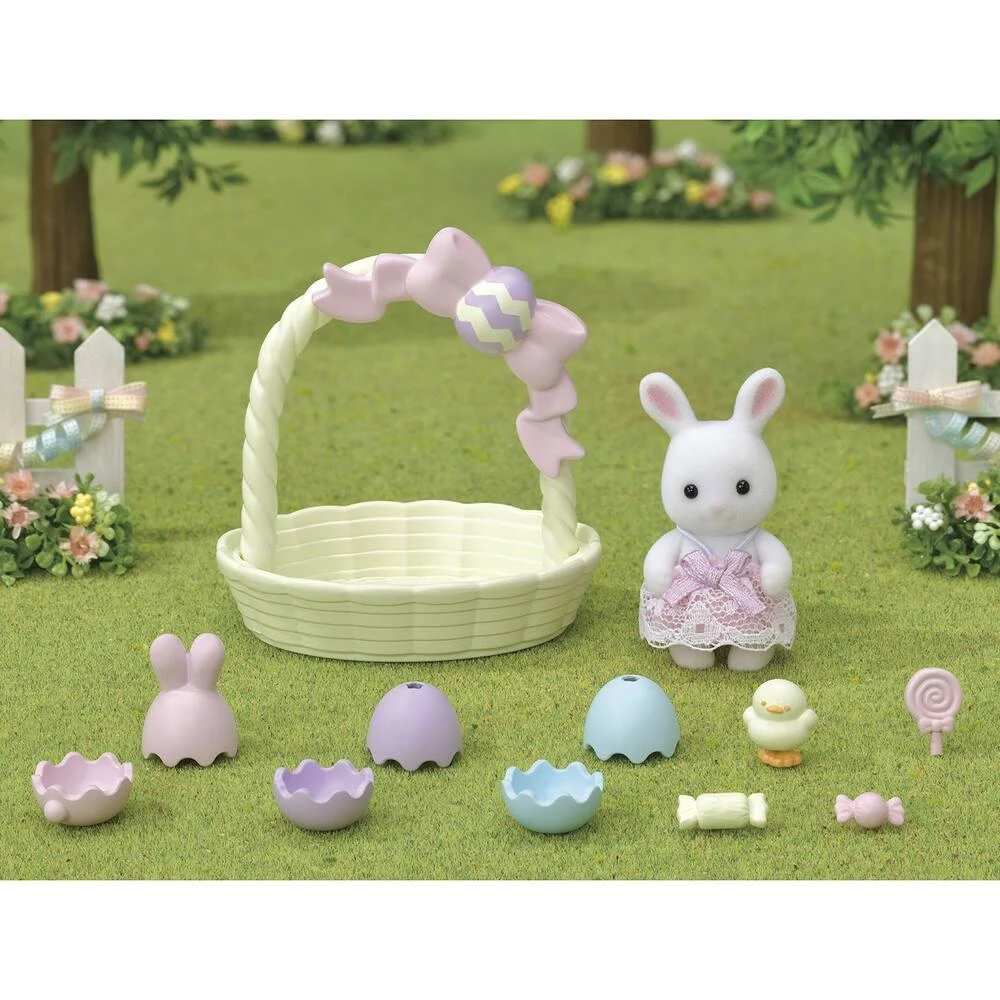 Les bébés Sylvanian sont tous réunis dans le jardin, à la recherche des chocolats de Pâques ! Le bébé lapin blanc a déjà déposé 3 oeufs dans son panier. Il reste encore de délicieux chocolats à trouver ! Contient le bébé lapin blanc. Viens jouer avec nous ! Sylvanian Families des souvenirs pour la vie.