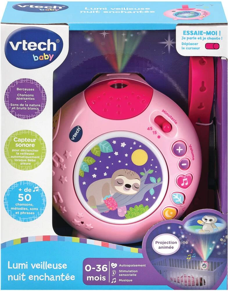 Une veilleuse avec différentes variations de couleurs qui rassurent Bébé et l’aident à s’endormir ! Projection lumineuse avec différentes illustrations mettant en scène un personnage attachant des Baby loulous : Joyeux le paresseux. Avec 2 modes d’écoute : chansons et mélodies apaisantes, bruits blancs et sons de la nature. Découvrez aussi un détecteur de pleurs qui déclenche automatiquement des mélodies pour apaiser Bébé lorsqu’il se réveille. Réglage de la projection lumineuse possible avec une