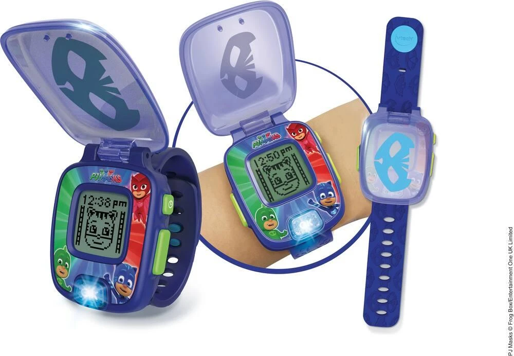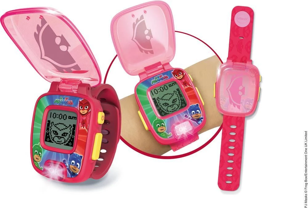 Une montre multifonction parlante aux couleurs des Pyjamasques avec un écran animé pour jouer et apprendre avec tes héros préférés ! Nombreux cadrans pour personnaliser sa montre. Un bouton lumineux pour devenir un vrai justicier la nuit. 4 jeux pour faire des découvertes avec tes héros, apprendre à compter, découvrir les nombres et les formes. Double affichage de l’heure : analogique ou digital. Fonctions alarme/réveil, chronomètre et sablier pour délimiter un temps donné. Modèle selon disponibilité. Vendu à l’unité. Il convient aux enfants de 3 à 7 ans.